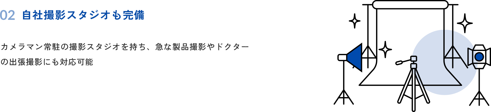 弊社には自社スタジオがあり、カメラマンも常駐しておりますので是非一式ご依頼頂ければと思います。こちらがスタジオや撮影についてのサイトとなります。