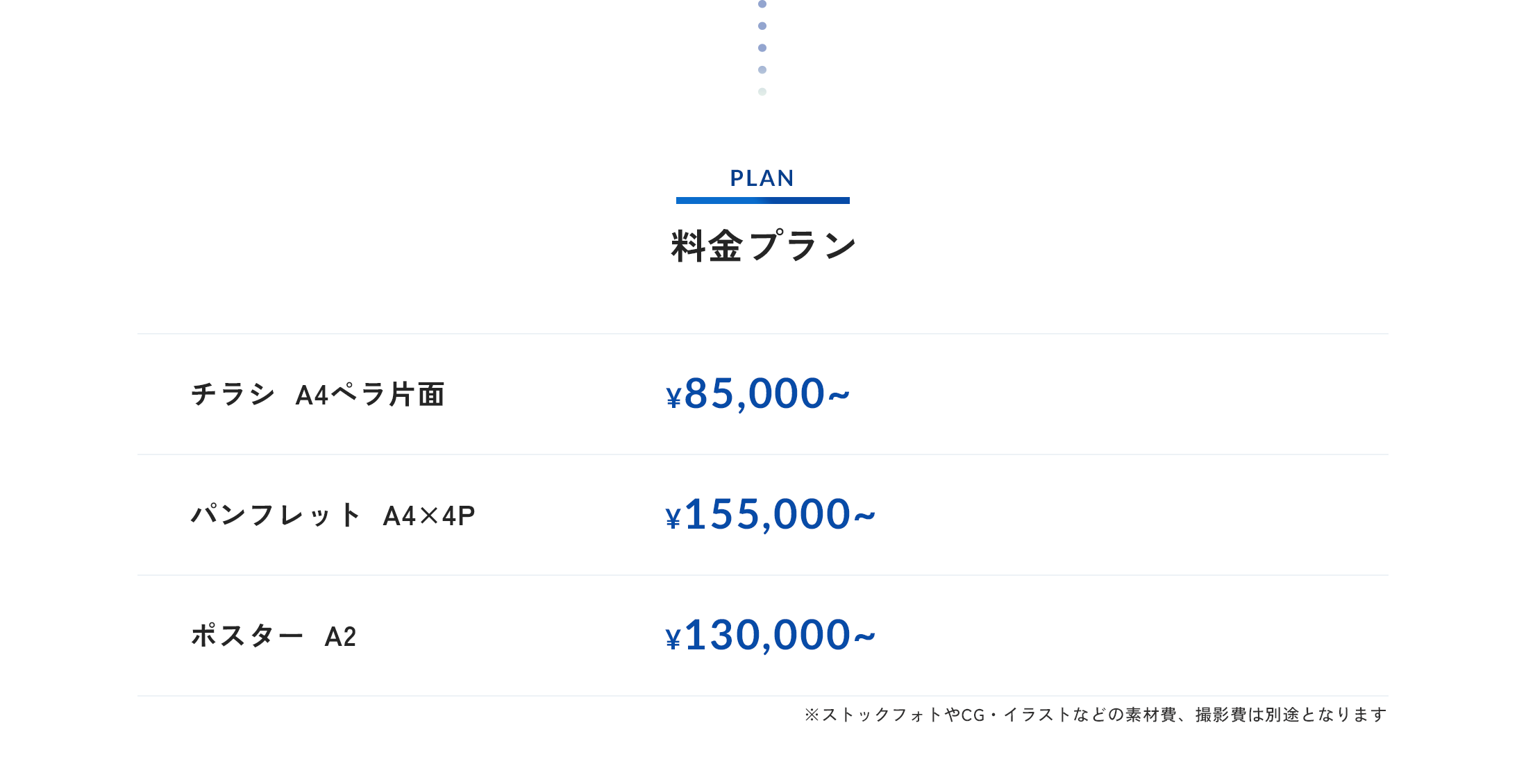 クライアント様のご予算が限られていることも多々あるかと思います。ご予算に合わせたご提案・制作を心がけておりますので、ご依頼時にご予算をまずは伺えますとスムーズかと思われます。